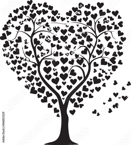 tree with hearts Silhouette Vector Illustration