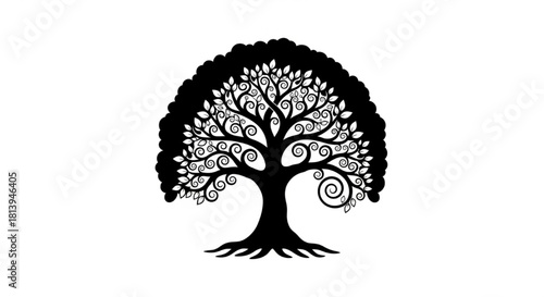 Tree‑of‑Life Silhouette Vector Showing Stylistic Variations — Simple Trunk, Intertwined Branches, Rounded Canopy, Spiral Form