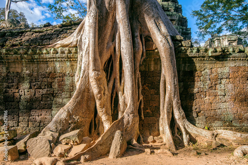 Trees growing out of Ta Prohm temple, Angkor Wat in Cambodia.