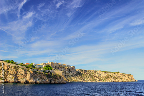 Tremiti Islands' archipelago,Italian Pearls of the Adriatic Sea (Apulia) ITALY. A view of San Nicola island from sea with the Abbey of Santa Maria a Mare ("Holy Mary on the Sea") fortified complex.