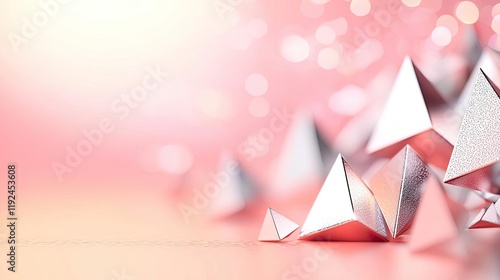 Triangle abstract background concept. Abstract geometric shapes in silver against a soft pink background with bokeh effect.