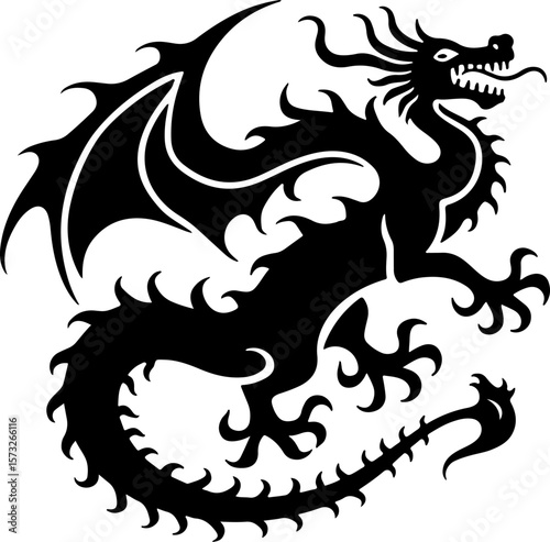 Tribal Dragon & Flame Totem Tattoo Design Set Vector