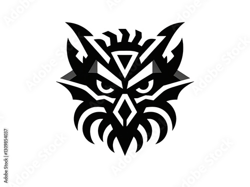 Tribal Dragon Head Illustration with Symmetrical Design and Sharp Details