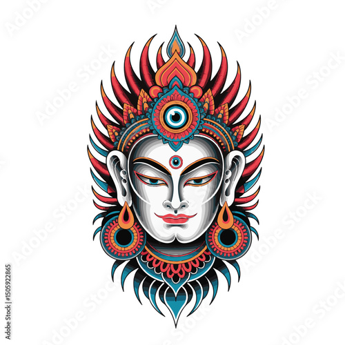 Tribal mask vector art illustration with skull tattoo design