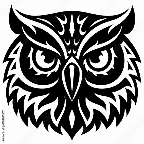 Tribal Owl Head Vector Design Fierce Mascot with Intricate War Paint Illustration