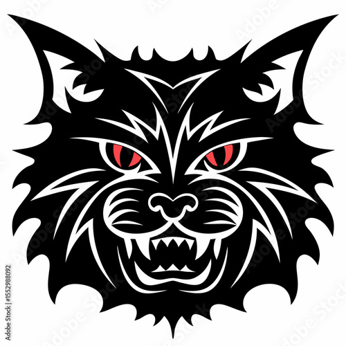 Tribal Tattoo Style Angry Black Cat Head Illustration