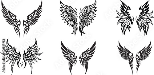 Tribal Wings Tattoo Vector Set – Black Symmetrical Wing Illustrations