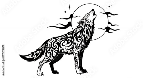 Tribal wolf howling at the moon