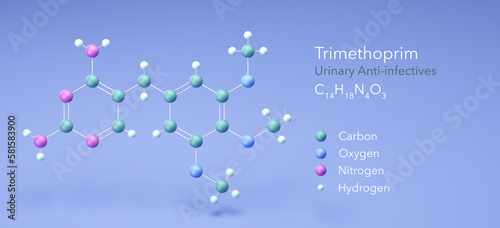 trimethoprim molecule, molecular structures, urinary anti-infectives, 3d model, Structural Chemical Formula and Atoms with Color Coding