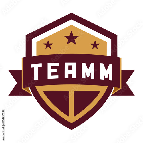Trio of sports badge logos with team name slots in gold, navy, and maroon schemes