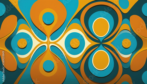 Trippy and abstract 1960s wallpaper floral pattern Illustration. Generative AI.