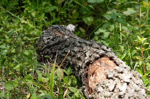 tronco caido en vegetacion verde