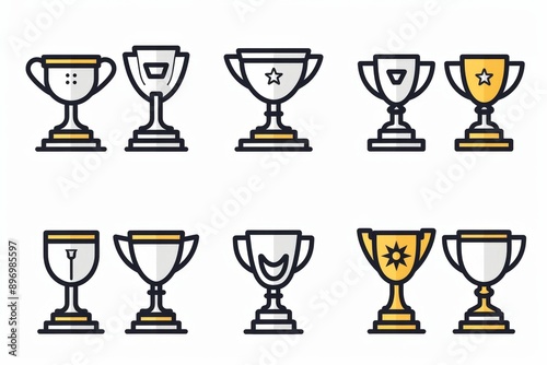 Trophy cups, golden goblet, silver reward, champion bowls. Contest winner award collection, prize cup