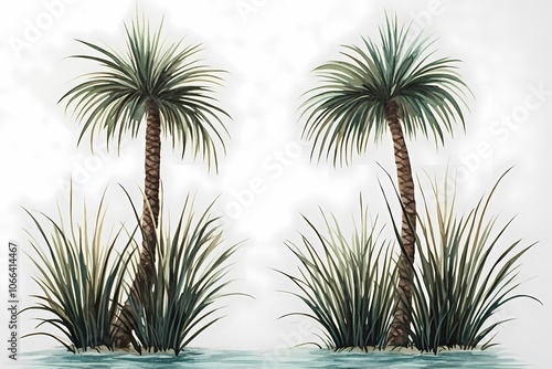 Tropical Beach Scene with Palm Trees and Turquoise Water