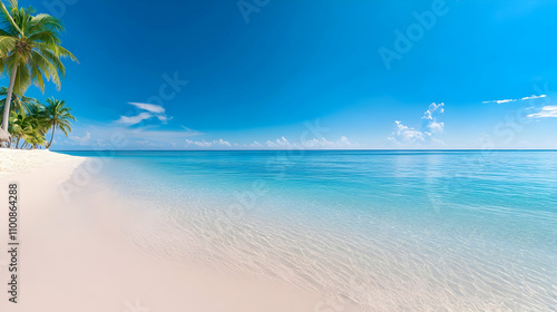 Tropical beach with palm trees and clear blue water