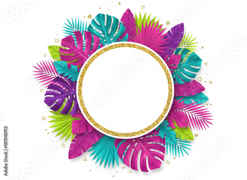 Tropical frame with natural flower and leaf