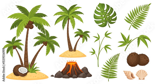 Tropical Island Plants and Rocks Set – Vector Game Elements