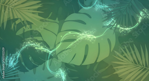 Tropical leaf design with glowing lines.