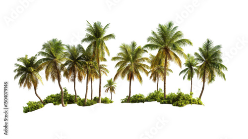 Tropical Oasis with Blush Pink Palm Tree and Lush Greenery Isolated on White Background