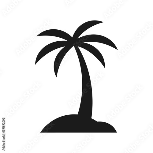 Tropical Palm Tree Icon: Island Beach Vacation Black Vector Design