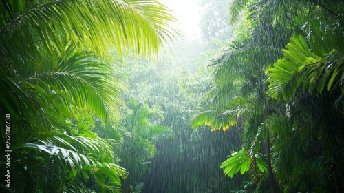 Tropical rain shower over a dense jungle wet weather