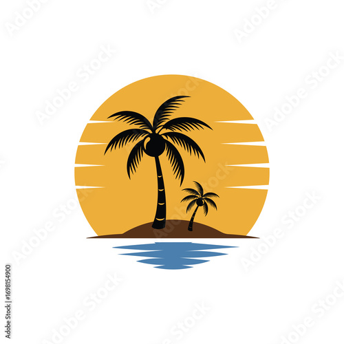 Tropical Sunset Beach Vector | Palm Tree Surf Graphic Design Bundle