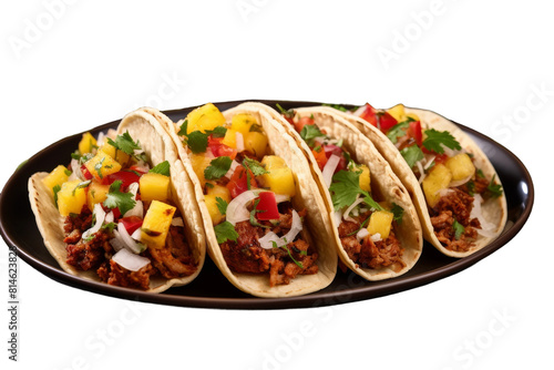 Tropical Tacos Delight With Pineapple Salsa. On a White or Clear Surface PNG Transparent Background.
