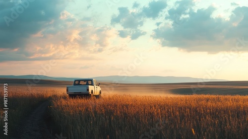 Truck in the golden wheat field