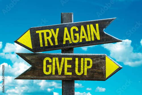Try Again - Give Up signpost with sky background