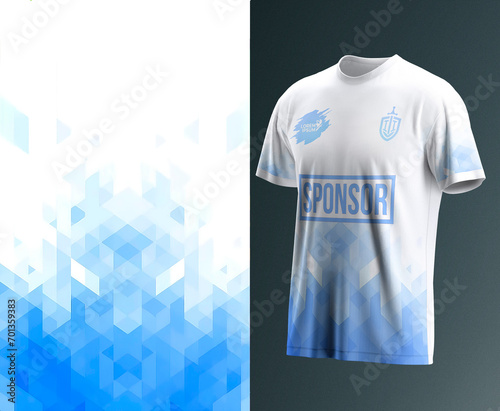 T-Shirt Short-White and Blue Design Front View for Sport Jersey, Football, Motocross, Racing, Cycling, Fishing, Diving, Leggings, Soccer, Gaming