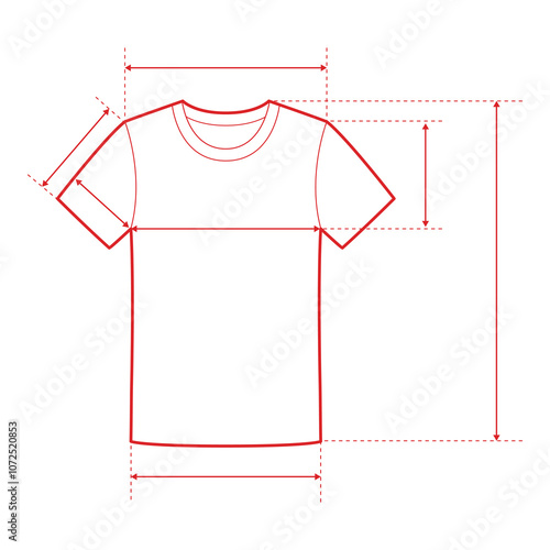 T-Shirt Technical Drawing with Measurement Points and Size Chart