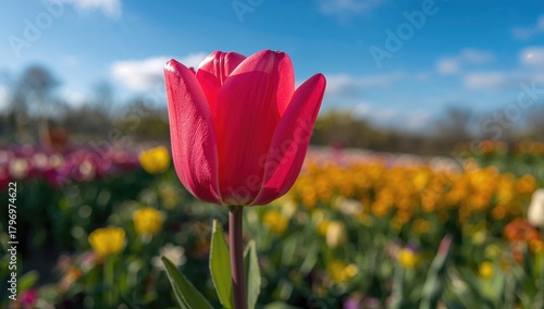 Tulip blooming in a spring garden, showcasing vibrant colors and natural beauty, seasonal change