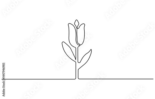 Tulip flower outline drawing illustration. one continuous line drawing of tulip flower. Nature concept.