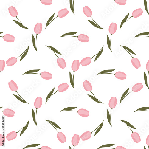 Tulips hand drawn seamless pattern. Spring, fresh flowers drawing. Backdrop with tulips. Botanical wrapping paper, textile, vector illustration .