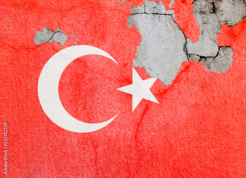 Turkish flag on old wall with peeling paint