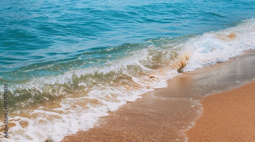 Turquoise Ocean Wave Rolling Onto Sandy Beach Under Sunlight