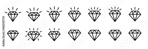 Twelve Diamond Icons: Variations of Outlined Diamonds with and without Burst Effects