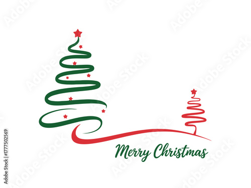 Two abstract Christmas trees with the words Merry Christmas underneath them.