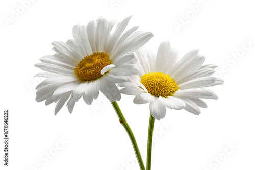 Two beautiful daisy flowers isolated on transparent background in closeup view