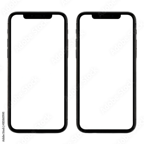 Two black smartphones, screen-lit white, displayed side-by-side on a black background