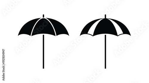 Two black umbrellas displayed against a white background a striking silhouette