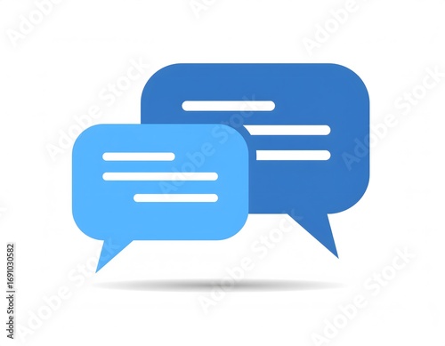 Two blue speech bubbles, one lighter than the other, overlapping and casting a shadow, suggesting communication or conversation.