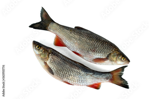 Two chub are located diagonally. Isolated on white background. A common freshwater fish.