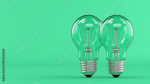 Two Clear Lightbulbs on Mint Green Background