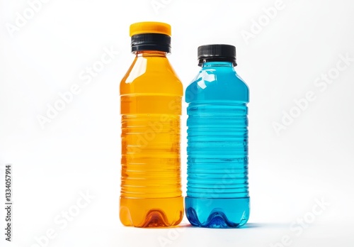 Two colored sports drink bottles on a white background