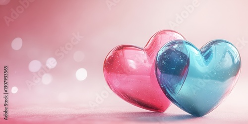 Two colorful glass hearts representing love and connection on a soft background during a romantic evening