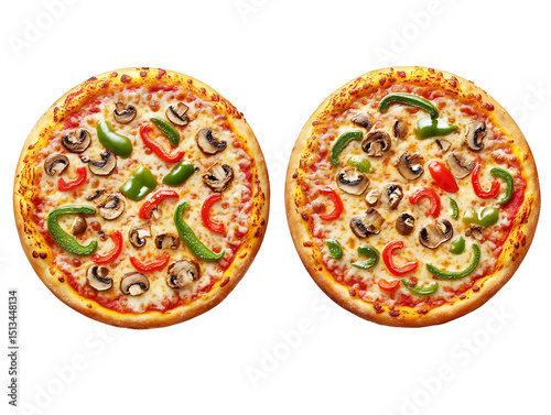 Two delicious mushroom and pepper pizzas on a black background for food photography