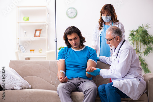 Two doctors visiting sick young man at home