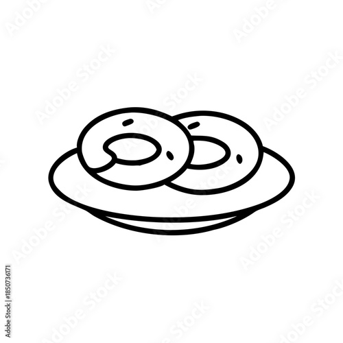 Two donuts on a plate in simple line art style
