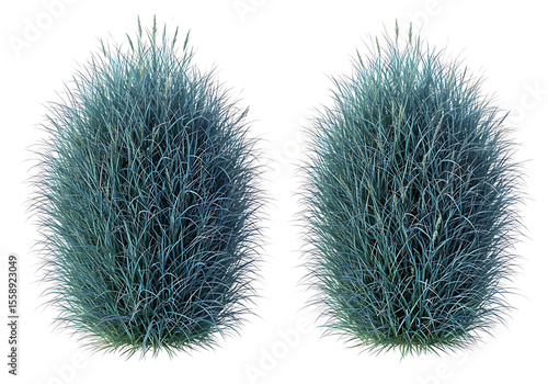 Two fluffy blue ornamental grass clumps isolated on transparent background